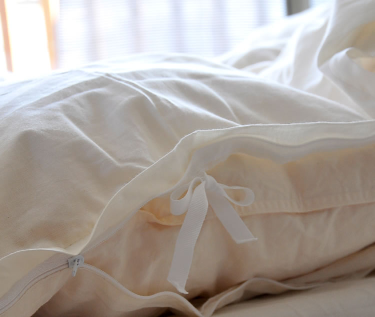 定番ガーゼカバーのベージュと、オーガニックガーゼのきなりの色を比べてみると、オーガニックガーゼ・きなりの方が明るく白に近い色味です。